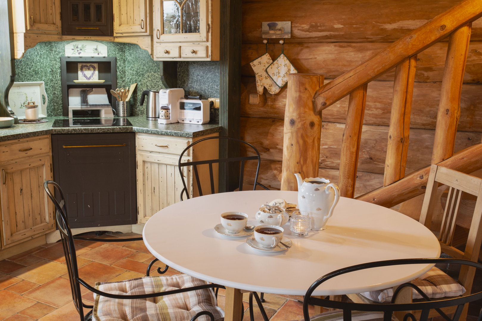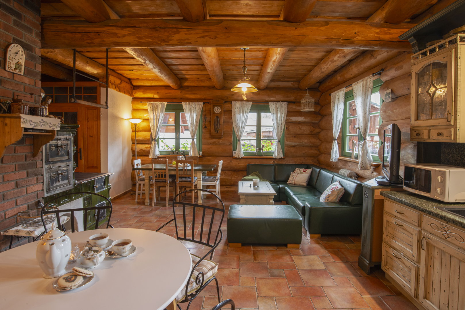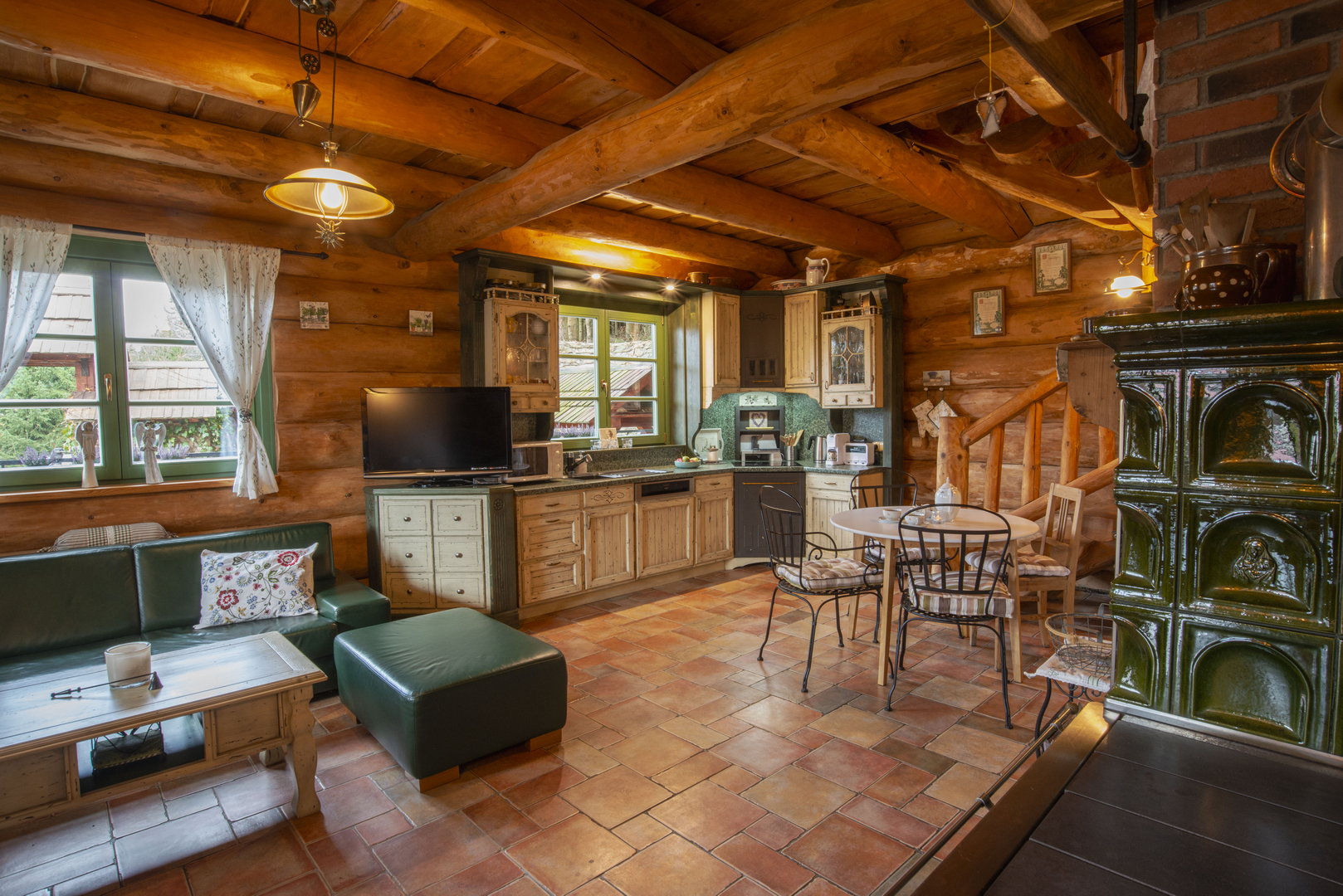 - plně vybavená kuchyň s kávovarem, myčkou, sporák, trouba v kamnech