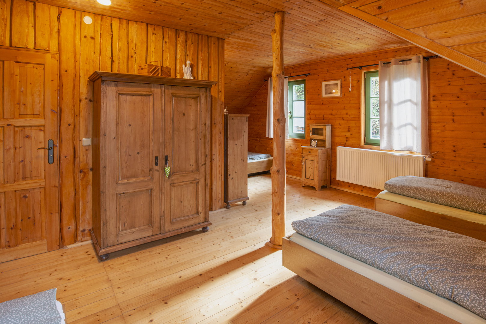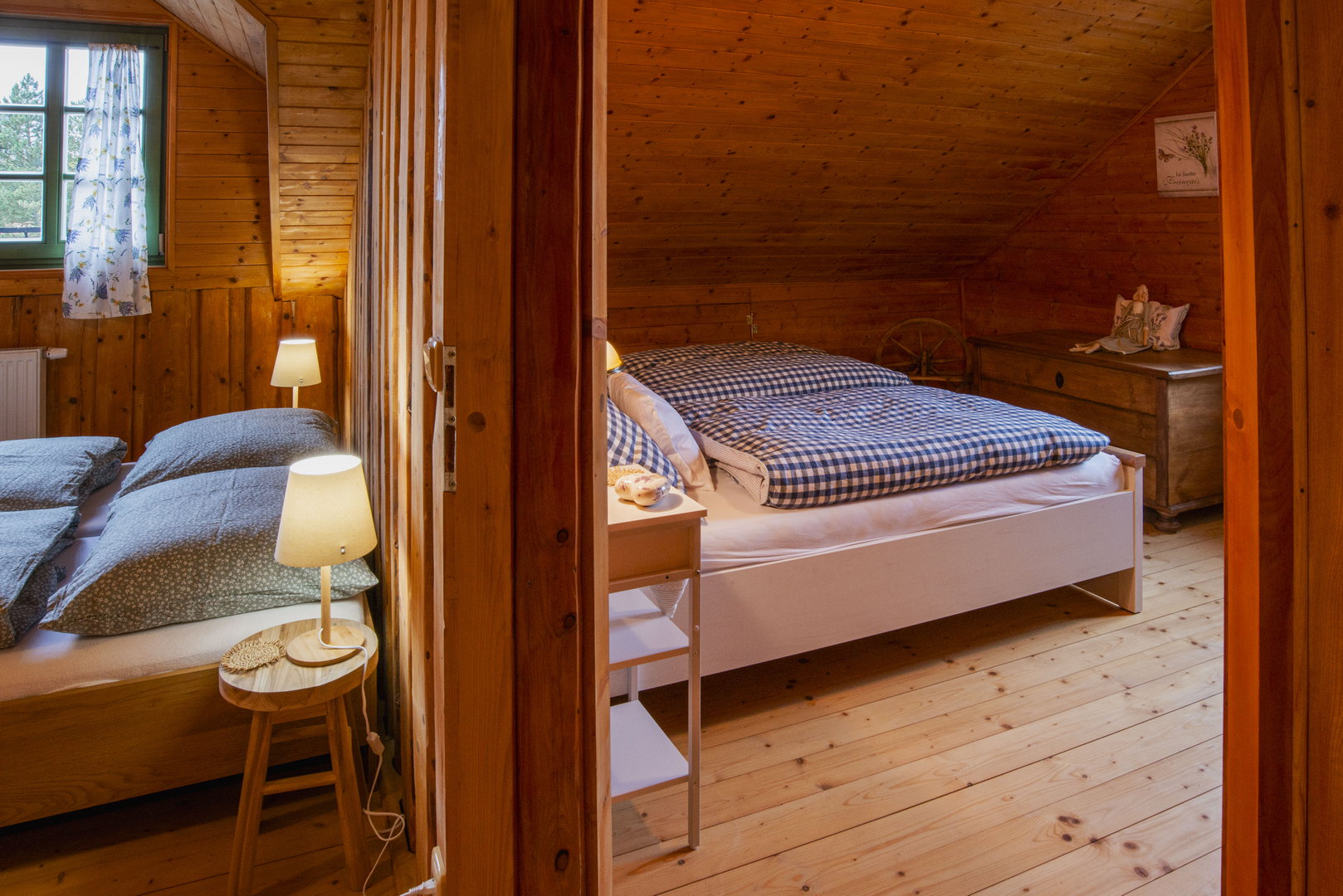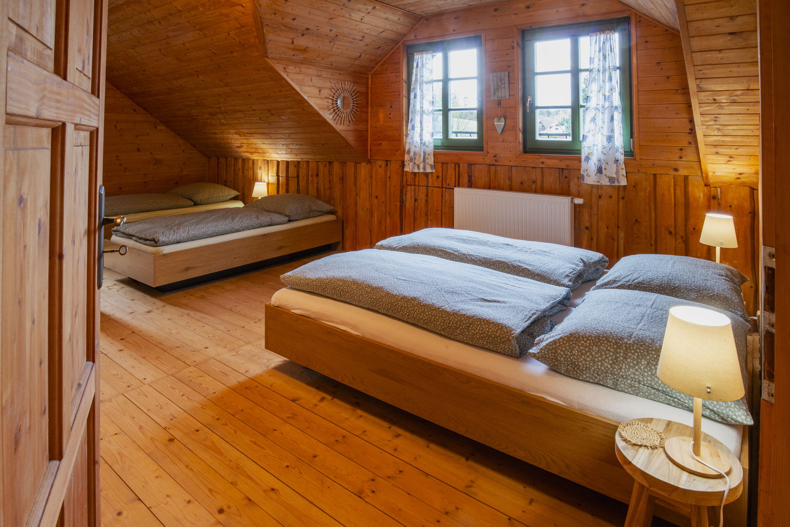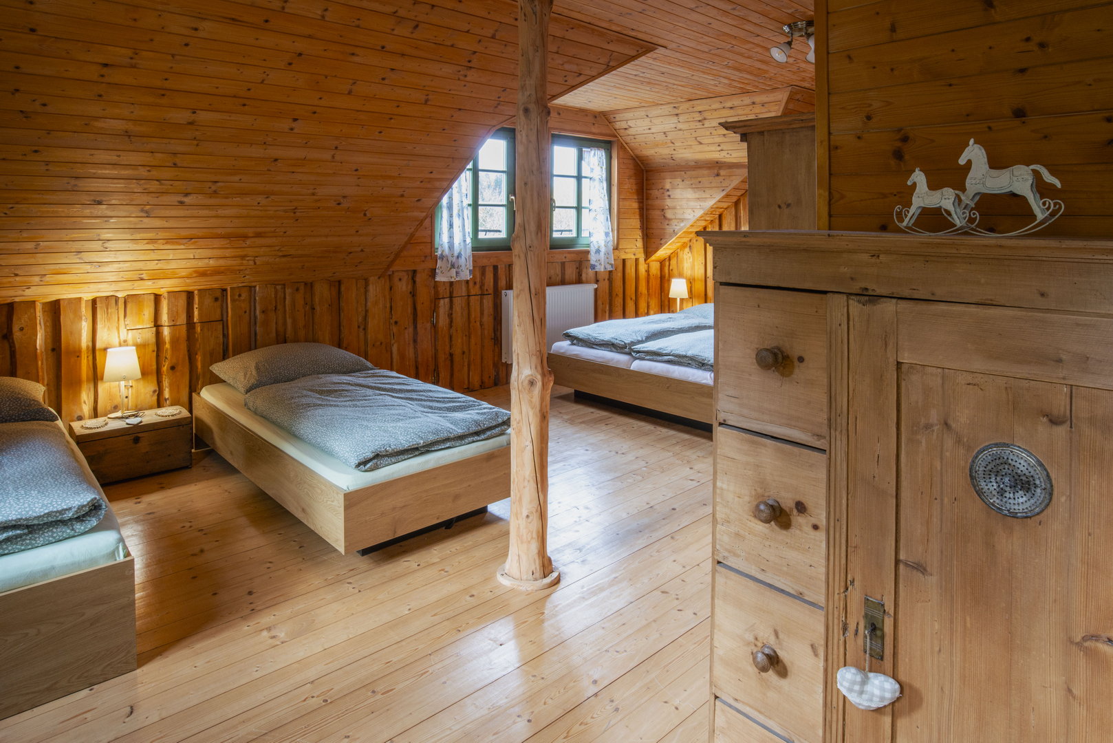 Tři ložnice a hernička s pohodlnými postelemi poskytují dostatek soukromí pro rodiny i skupiny přátel. K odpočinku láká i “velká” zahrada s ohništěm a grilem, kde je slyšet jen šum lesa a potůčku.